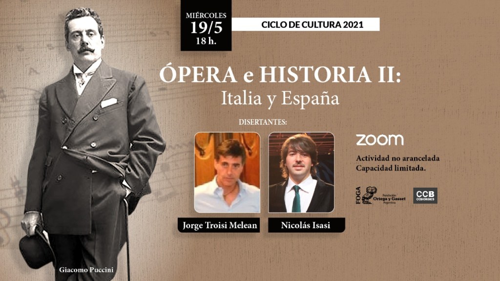 A partir de su herencia colonial y de las sucesivas oleadas migratorias desde el siglo XIX, la Argentina ha sido atravesada por dos corrientes musicales nacionales principales: la italiana y la española. En este ciclo interdisciplinario de dos encuentros, buscaremos explorar la ópera italiana y la española en los tiempos en las que fueron imaginadas y recibidas. Observaremos la relación de áreas como la arquitectura, la literatura, la religión o la historia que han servido como eje y articulación de cada espectáculo operístico. Analizaremos algunos aspectos estructurales, musicales y la relación del espectáculo operístico con otros medios. La ópera refleja la época y la sociedad en la que se creó, transmitiendo ideas de género, economía, raza, clase, modos de producción, cultura e historia, desde donde se han creado personajes y narrado historias.