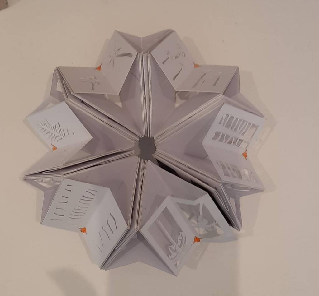 Esta muestra propone una vuelta al arte en pequeño formato de libros con imágenes figurativas de árboles troqueladas y recortadas en soporte de papel blanco. En algunos de estos pequeños libros se pueden encontrar cortezas, hojas, grietas, ramas o flores. En otros, como es el caso del canelo, algunas de sus utilidades como el incienso al igual que árboles frutales o aromáticos que son representados como recortes de siluetas.