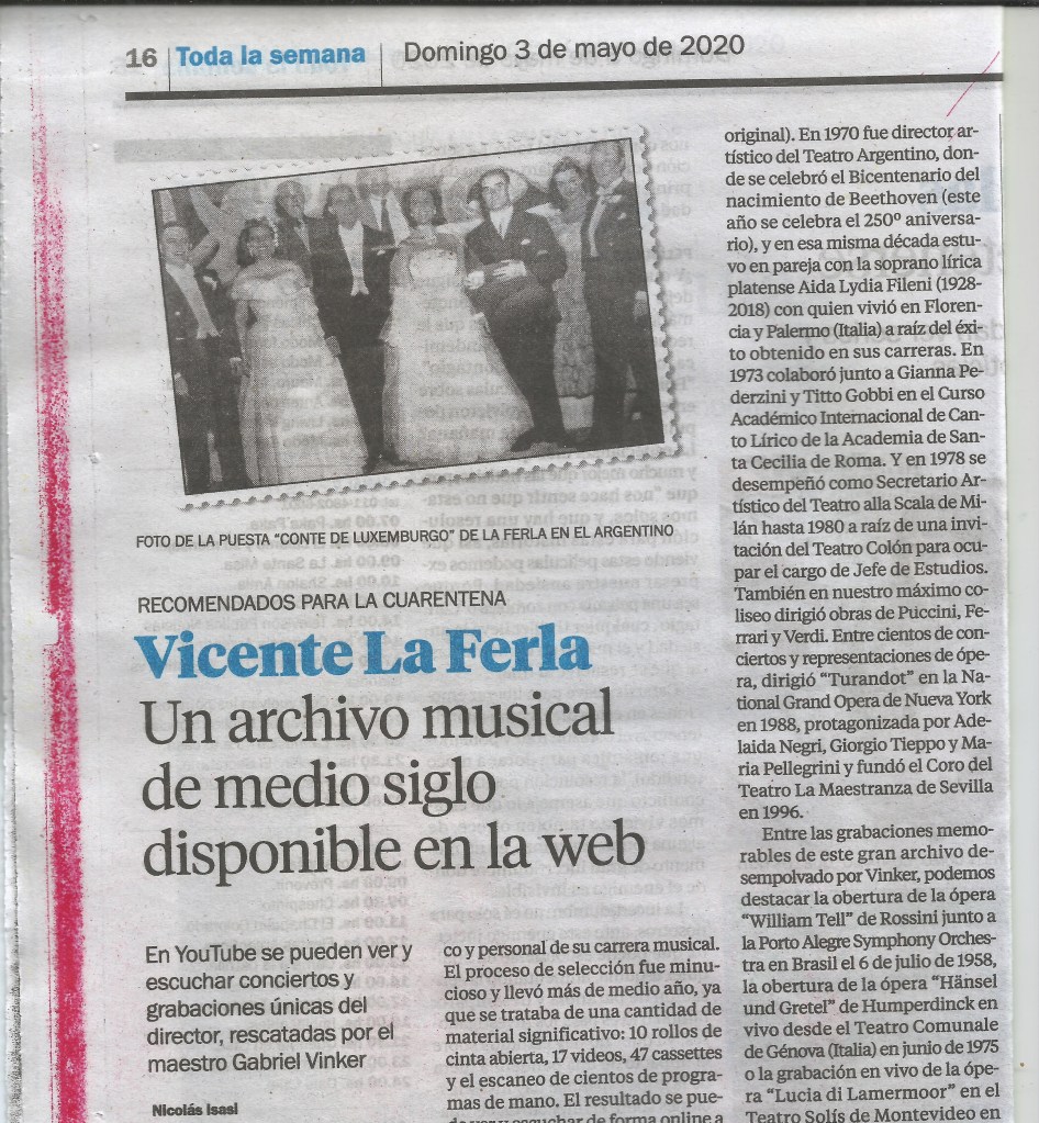 Manuel Antin. Vicente La Ferla. Uno un maestro del cine, el otro de la ópera. Dos destacados artistas que marcaron rumbo. La maestría de sus obras y enseñanzas no supo de fronteras, al igual que su generosidad.
