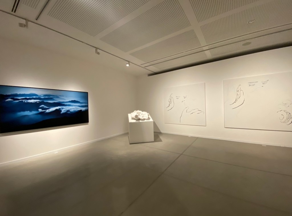 Tres caminos, un horizonte, cuenta con tres esculturas de Pablo Atchugarry, pinturas y esculturas de Eva Claessens y fotografías de Julian Lennon, primogénito del mítico Beatle. Tres enfoques artísticos contemporáneos moldeados en diferentes contextos y caminos pero que viajan en una misma dirección. La serenidad de Claessens invita a pensar la figura humana, con una línea leve y delicada. Personas que parecen evitar la mirada con el espectador, pero que dialogan con el resto de las obras. Lennon explora el color sobre el paisaje uruguayo desde una práctica fotográfica sensible: imágenes bucólicas de horizontes, atardeceres en la playa o caballos bajo el sol. Lugares que transmiten tranquilidad y nostalgia, también recordando muchas de sus composiciones musicales. Las obras de Atchugarry, creador y alma mater del museo, aportan la dimensión escultórica material de una trayectoria consolidada, demostrado también en su curaduría.